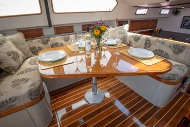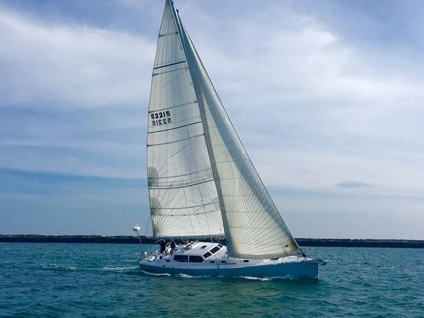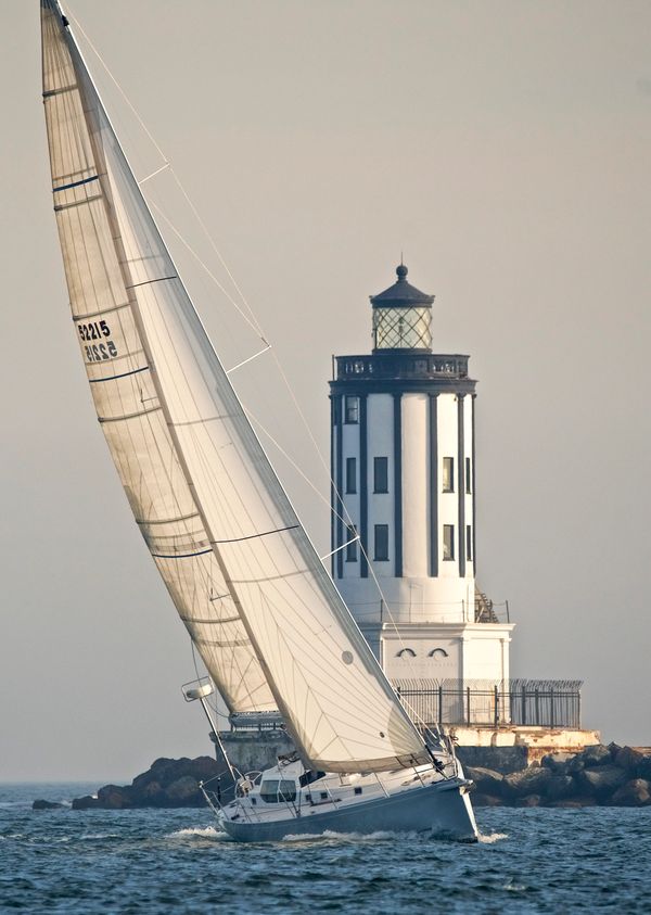 Malolo is truly an amazing yacht. Beautiful flowing lines, bright comfortable light cherry-wood interior. An absolute joy to sail. I frequently sail her by myself, comfortably in up to 20 knots of wind. I have had her up on a plane with just the #4 and a reef in the main doing 13 to 15 knots in 28-30 knots of wind single handed. I've averaged 10.25 knots from LA Light to Avalon and 9.22 knots from LA Light to Ship Rock (2:09 and 2:04 respectfully) that's single handed with the auto helm driving 95% of the way. I can leave the dock with the Main up and return. I can put the boat on a mooring single handed. Of course it is easier if there is a competent second or more persons on board. PHRF RATING -36; it is my opinion she will sail to that rating with a competent, regular crew, with just the existing sails